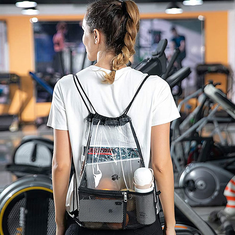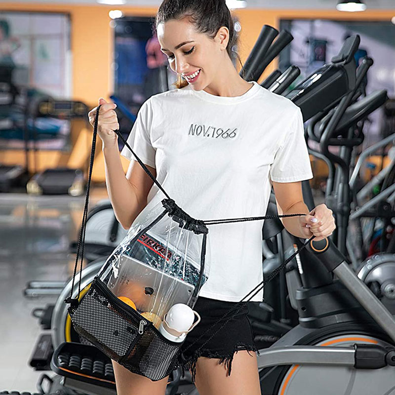 · Sac à corde transparente --- U saccu di corda hè fattu di PVC trasparente resistente, resistente à l'acqua è à u fretu. U saccu completamente trasparente permette di passà facilmente u cuntrollu di sicurezza.