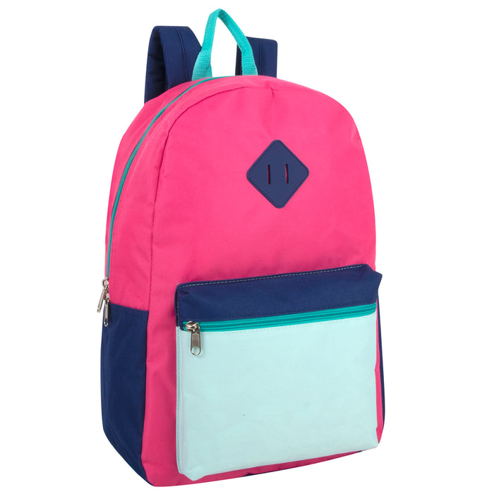 Custodia ingrossu di 24 sacchetti. I Bags in Bulk all'ingrosso di 17 Inch Multicolor Backpack vene in 4 stili di culori perfetti per ogni studiente. Ogni saccu misura 17 x 12 x 5.5 inch facendu una scelta classica per ogni studiente.