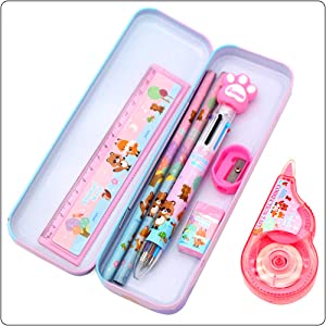 · 【Contenutu di u pacchettu】1 x Scatola di matite, 2 x Matite, 1 x Penna a sfera di 6 culori, 1 x Temperatrice, 1 x Gomma, 1 x Nastro di correzione, 1 x Righelu metricu